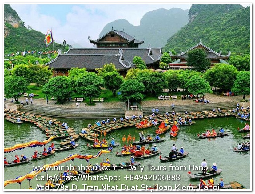 13:00 - 13:05: Get on the bus go to Trang An wharf for enjoying unique sampan to visit Trang An cave complex and the scene of King Kong film.
